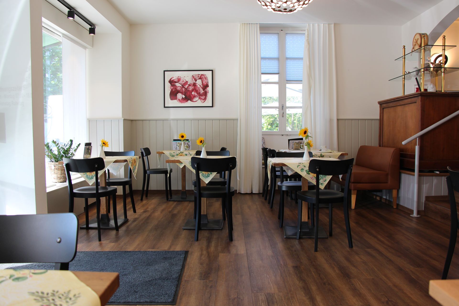 Es gibt frische Hausmannskost, die mit viel Liebe gekocht wird. Viele Stammgäste kommen jeden Tag zum Mittagessen und schätzen unser hausgemachtes Essen in guter Gesellschaft sehr. «Ich koche wie zu Hause, manchmal gibt es 4 Menüs zur Auswahl, manchmal auch nur eines. Die Gäste nehmen es aber immer dankbar an und freuen sich. « Ein sehr beliebter Teller ist zum Beispiel Fleischkäse mit Spiegelei. Dies ist nicht ein typisches Gericht, das man im Restaurant bekommt, vielleicht wird es gerade deswegen so gerne bestellt. Vor allem die älteren Menschen in Riehen freuen sich sehr, jeden Tag im Dolce Sosta zu Mittag zu essen. Hier kommt sicher auch der pflegerische Hintergrund von Jacqueline Hafner zum Zug, denn sie freut sich sehr, wenn die Menschen nicht zu Hause allein am Tisch sitzen müssen und sie jemandem ein Lächeln ins Gesicht zaubern kann. So bekommt das Café einen sozialen Aspekt und trägt dazu bei, dass ältere Menschen ihre sozialen Kontakte pflegen können und ein schönes Mittagessen bekommen. Die Atmosphäre ist auch sehr familiär. Man kennt sich, tauscht ein paar nette Worte aus. Das Angebot im Café ist breit und wird immer wieder den Bedürfnissen der Gäste angepasst. Es umfasst Frühstück, Mittagessen, Kuchen und eine Glacékarte. Der Gastgeberin war diese ein besonderes Anliegen. Sie umfasst 18 Sorten und es gibt wunderschöne und riesige Coupes, die sehr beliebt sind.